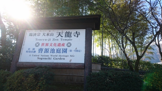 臨済宗大本山 天龍寺、案内板の右側に少々歴史を感じさせる地名表示 「右京区 嵯峨天龍寺芒ノ馬場町」・・なんて呼ぶのでしょう? |