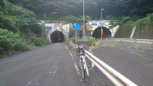 亀岡市から京都市に向かう一般道では右側を国道9号線が・・ 左側トンネルは旧トンネルで今では人道・歩道用 |