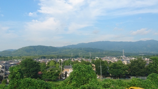 階段を登り切って振り返る・・向こうは寝屋川市 |