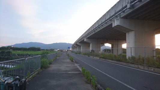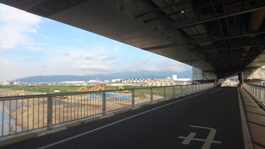 向こうに見えるは「京都縦貫自動車道」この手前で自転車との間に国道9号線 |