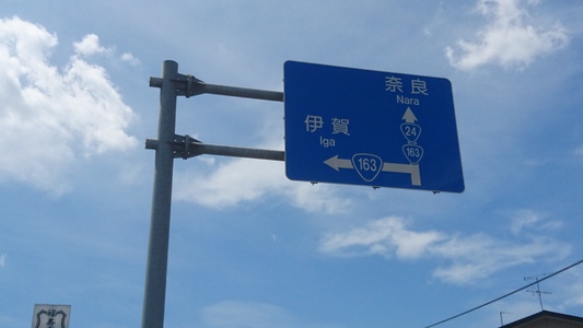 直進は奈良方面(国道24号線・国道163号線) 左折は伊賀方面(国道163号線) |