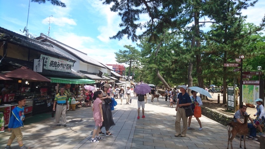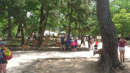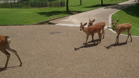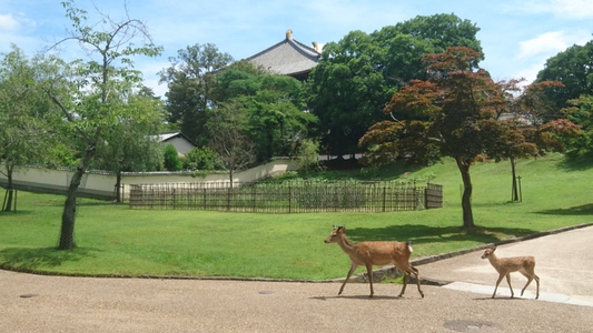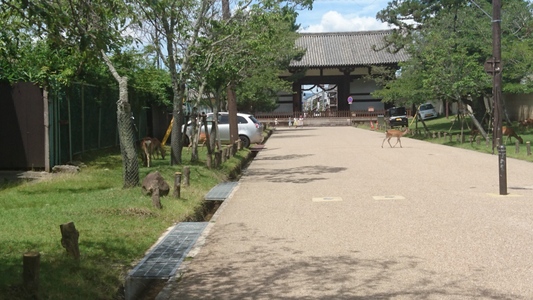 北側より東大寺境内に入ると早速、シカさん達に・・出会う 出迎えられた・・と思いたい。 前方に見えるは転害門(てがいもん) |