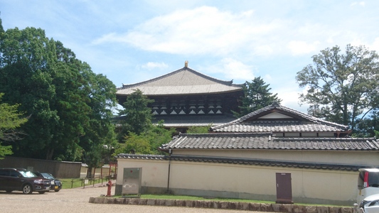 東大寺(奈良県奈良市)の大仏池から大仏殿(金堂)を臨む |