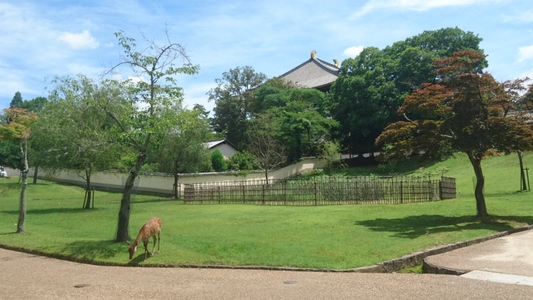 大仏殿(奈良市の東大寺)と境内に遊ぶ?鹿との調和 当方もその雰囲気に合わせないと・・・ |