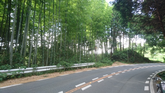 国道169号線・国道165号線の並行区間?から奈良県道15号に入り 暫し休憩・・気温が一気に上昇・・やけに水分を欲しがる。後方の自販機で 前方には古の雰囲気が漂う風景が・・実は自転車のスグ先に芭蕉の葉が 明らかに風になびいている 奈良公園を後にした頃(正午ころ)から風が出てきて、目的地近くでは自転車の ギアチェンジを一番軽い方に切り替えても重たい負担 一つには疲れの蓄積・・漕ぐ足の硬直に加えてずっと続く向い風が追い打ち その証拠になびく芭蕉や草々の状況を撮った次第 |