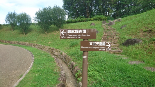 高松塚古墳は左へ 文武天皇陵は右へ |