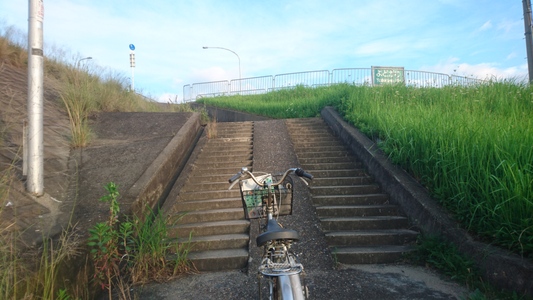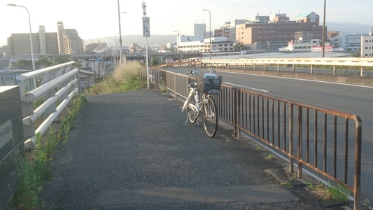 早朝に出発、最初のポイントは国道9号線横のここ「王子橋」 今回はワタシ、ママチャリのサイクリング自転車も何度か登場 もう3年近くも酷使されガタが来たし草臥れた・・引退も目前 高血圧症もちの人に今回のサイクリングに付き合わせられる |