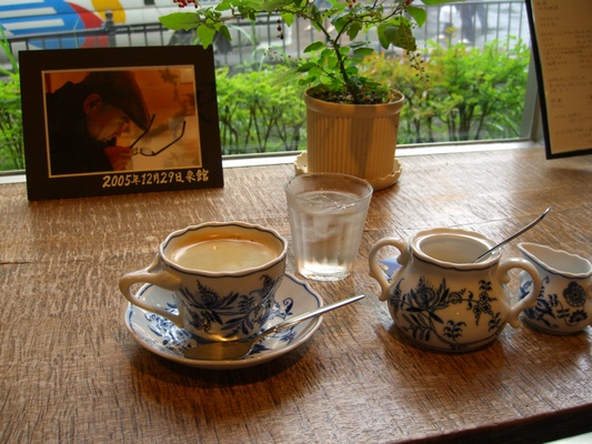 片岡鶴太郎美術館のカフェコーナーにて、いつに無く洒落て飲もう |