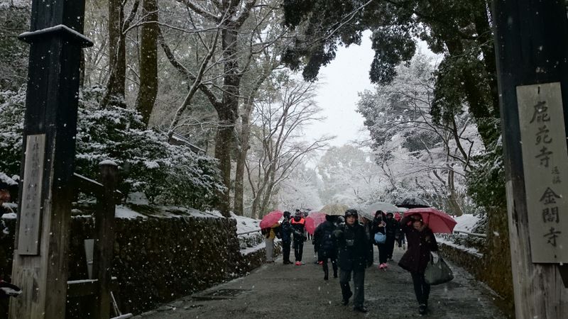 京都府京都市、世界遺産 鹿苑寺(金閣寺) 雪降る日も観光客は多い